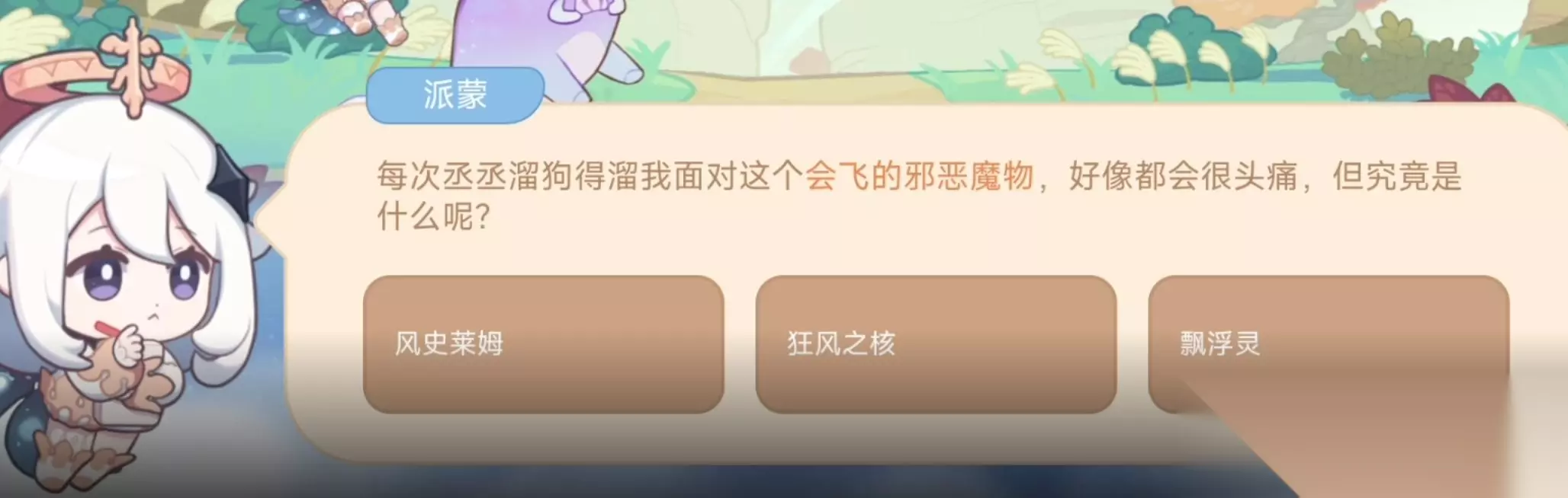 海上绮梦录答案第二天分享: 海上绮梦录这个网页活动昨天一上线就获得了大量玩家的参与,玩家们需要完成每日规定的任务获得灵感解锁小岛并进入小岛回答派蒙的问题即可获得奖励。玩家们要多多参与哦。 其他问题答案: 问题:每次丞丞遛狗得遛我面对这个会飞的邪恶魔物,好像都会很头疼,但究竟是什么呢? 答案:飘浮灵