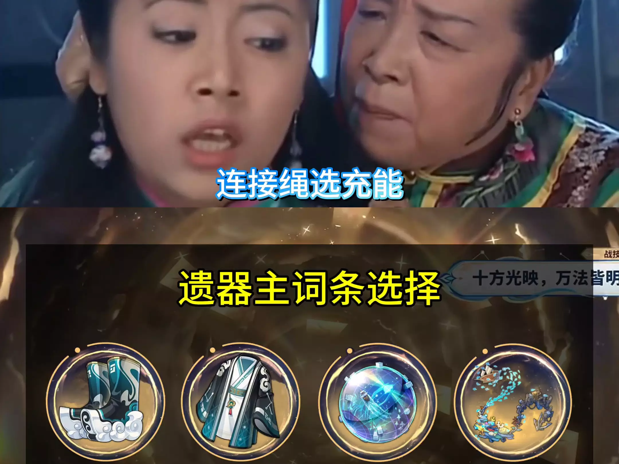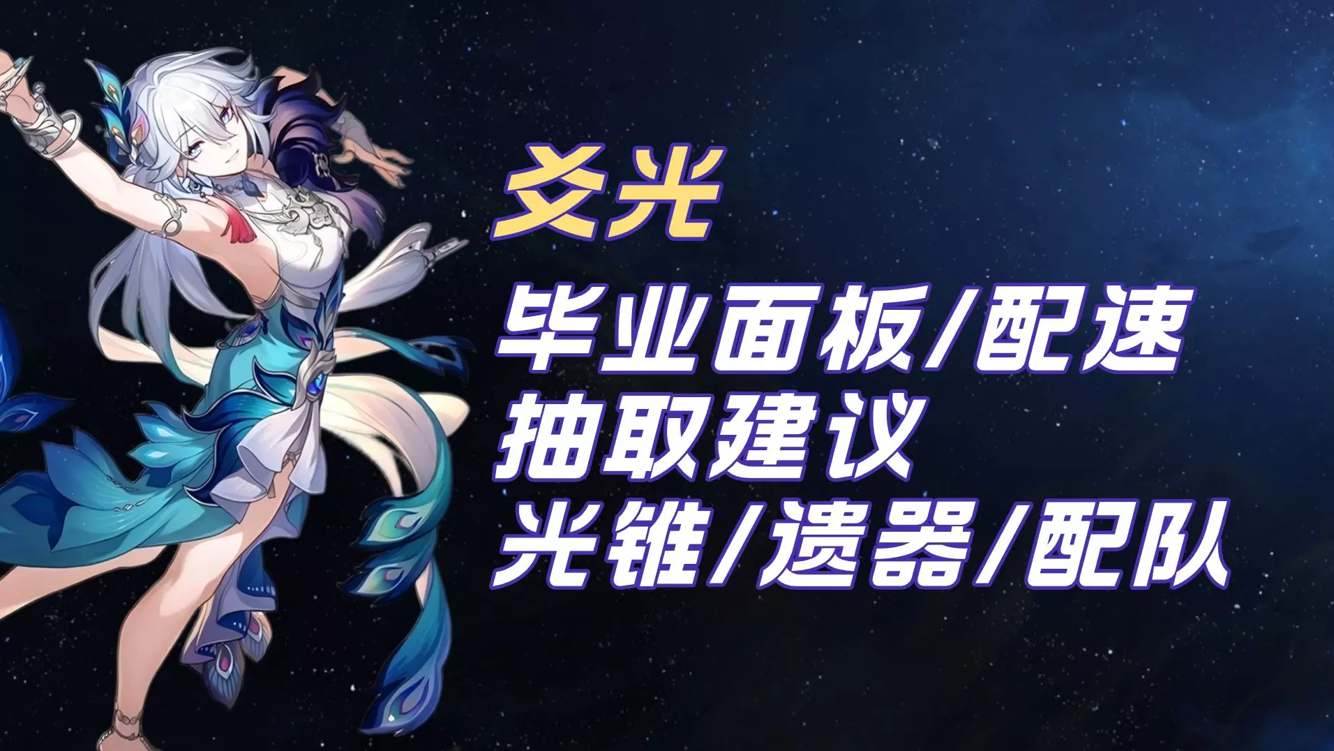对于欢愉命途: 队伍里存在欢愉命途角色,星神阿哈将在行动条上一起行动 行动时,使所有欢愉角色打出“欢愉技”,造成彩色的“欢愉伤害” 欢愉伤害可以暴击,不吃增伤,和原神的“月曜反应”类似(如月绽放) 欢愉伤害的构成:“等级”、“欢愉度”、“笑点” 等级提供“等级系数”,攻击力被弃用; 欢愉度是“外置倍率”,公式为:“(1+欢愉度)×欢愉伤害倍率 ” 爻光的欢愉技为100%欢愉伤害倍率,假设实战里欢愉度为120%,则最终的倍率为: (1+120%)×100%=220% 技能的倍率从100%强化至220% 欢愉伤害不吃增伤,笑点则可以理解为欢愉伤害的“专属增伤”,作用类似于“元素精通” 欢愉伤害的最终公式:等级系数×[(1+欢愉度)×欢愉伤害倍率]×(笑点)×其他乘区 (不吃增伤) “笑点”分布在两部分:右边战技点上方;以及左边角色头像旁边,叫做“好活当赏” “笑点”只增伤“欢愉技”;“好活当赏”只增伤角色自己的欢愉伤害技能 爻光的定位:欢愉辅助 核心辅助手段:战技给全队部分“欢愉度”; 大招使全队获得全属性抗性穿透,并使阿哈立即以20笑点,获得额外回合 欢愉技使敌人获得易伤,并回战技点 光锥:专属光锥→四星菇菇嘎嘎历险记(深渊商店兑换)→三星残泪 遗器:(外圈)应天涉远的卜者(4.0版本实装) (内圈)沉陆海域露莎卡 部件选择:(衣服)暴击率/暴击伤害; (鞋)速度; (球)生命值; (绳子)能量恢复效率 副词条优先级: 160速度以上→实战里70%/100%以上的暴击率→尽可能高的速度和双爆 适配队伍:(欢愉体系) 爻光、火花、花火、丹恒・腾荒 其他的欢愉队伍 皮鼓,踢