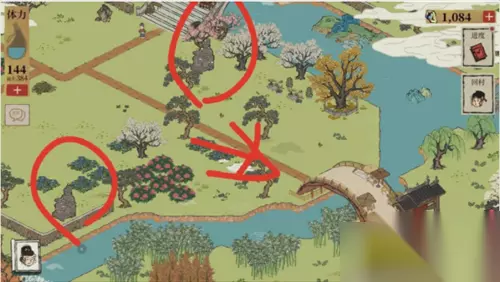 小铲子在地图最右边,需要先解锁桥,解锁桥的两个石象在桥附近。 先把两个灶王爷激活 然后获得两个黄色的纸 然后到下方桥边上一个人交给他就可以开启迷雾 迷雾里有个小树林,找还是非常好找的。 铲子所在的地方是一个迷雾里,要驱散迷雾,小树林是一小撮(几棵)松树,头尖尖的深绿色的那种。