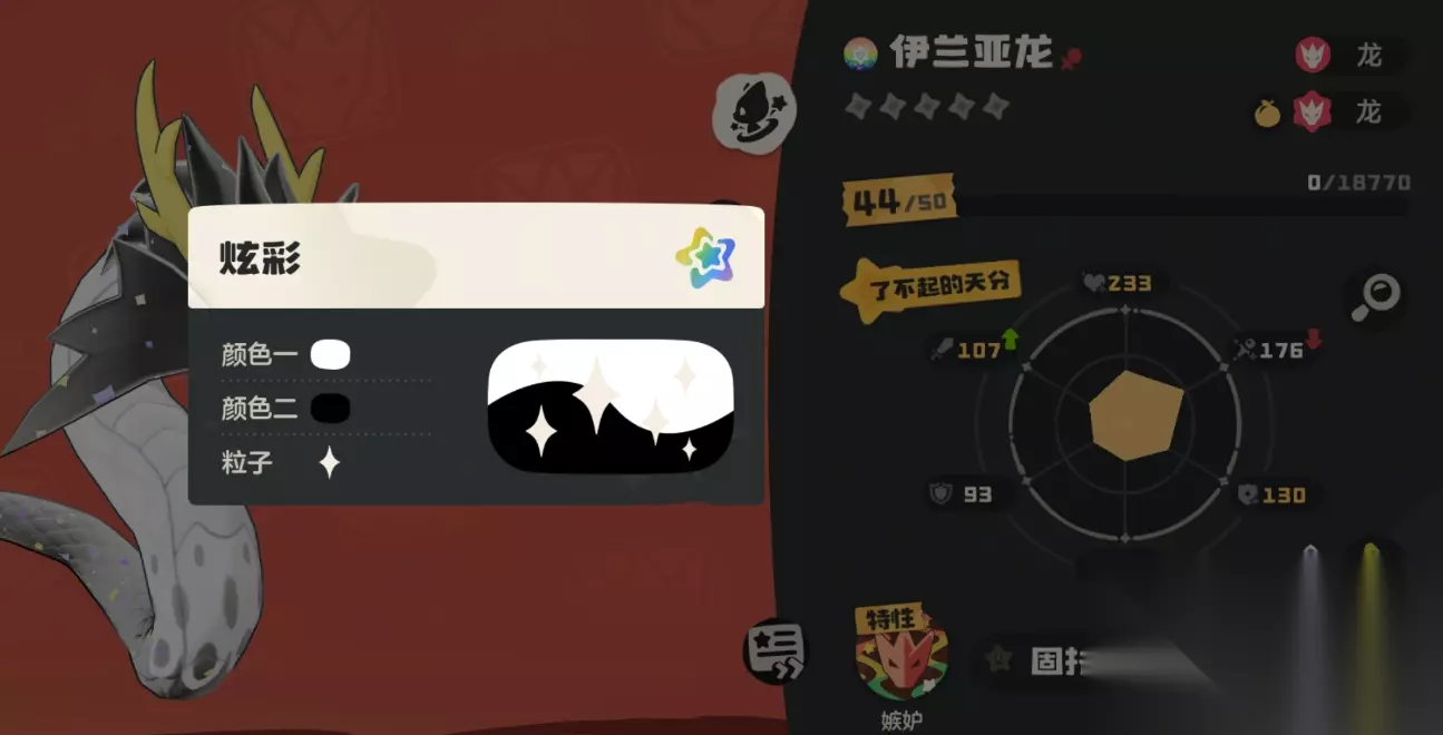 伊兰亚龙是龙属性的,由伊雷龙进化而来,它的特性嫉妒可以蓄力状态下,可以使用任一携带技能,它高达190的魔攻属性使其天然适合作为输出主力,它的物攻相对普通只有91点。