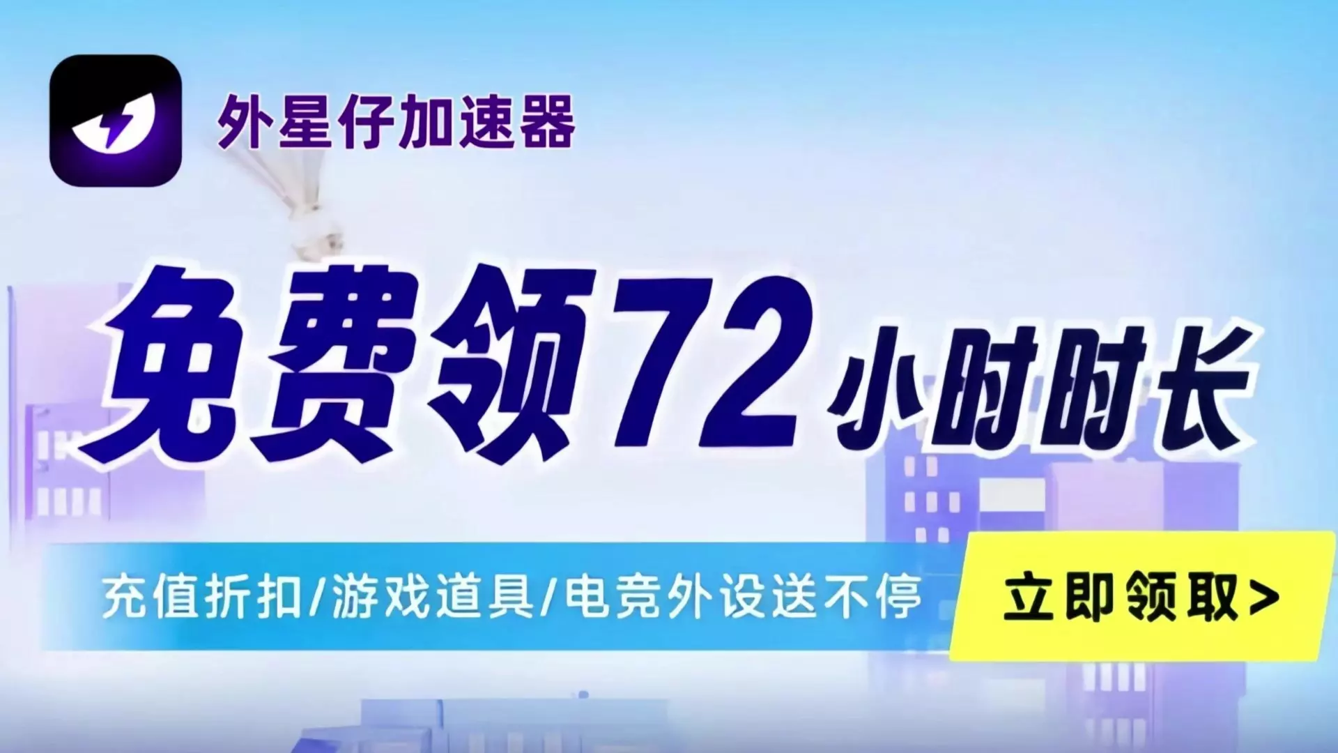 外星仔加速器可一键加速20000+全球游戏,支持Steam平台加速。当前可免费领取加速时长,最高能领1600小时,还可使用口令“外星大力王”获取福利,新人也有免费试用权益。