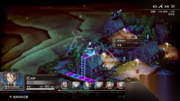 这之后王子上右边房梁,等盗贼过来之后用马首击撞下去。33级的王子不带加防饰品应该也能吃俩盗贼一人一刀剩血皮,但马首击命中率不是100%,可以把复活耳环给他。 下边三人迅速清掉被aoe打了三次的仨盗贼,这时候还剩boss和一个盗贼,用停止+令出必行秘技尽快秒掉盗贼,只剩boss的话奶妈可以完全抵消他的输出。王子撞下去俩盗贼之后往左边跑,左边还可以再撞,撞下去两次盗贼就都没了。剩下就是四人围住露西打死了。 第二章 上场人物:男主,王子,女主,老板娘,盾男,参谋,随意。 难度不高,开局参谋带先锋披肩给盾男补tp,老板娘一棍子把盾男打入敌阵,盾男开仁王盾。很诡异的是,敌方boss明明不吃愤怒,也会掉头过去围殴无敌状态的盾男。参谋第二次行动给女主补tp,女主奥义砸所有围殴盾男的人,其他人赶紧把盾男拉不到的小兵秒了。仁王盾结束之后开如虎添翼补3tp再开一次仁王盾,两次结束后基本就没剩几个敌人了。 第三章 走的公国线。 上场人物:男主,奶妈,鹰弓,老板娘,铁匠,弓仙,露西。没收露西的话随便换个人,不影响。 上房顶堵口战术的教学关。开局直接一个缩地成寸把npc扔上房梁,省的到处乱跑送死。奶妈装先锋披肩给男主加速。老板娘装备加速度的道具,等着猎人。猎人动的时候给老板娘上个令出必行,然后往高台方向走。 老板娘一棍子把猎人打上高台之后自己也去高台,其余人也往高台方向走。工匠每回合一个弹簧陷阱把高台右边的小兵控住。完成的阵型如图。