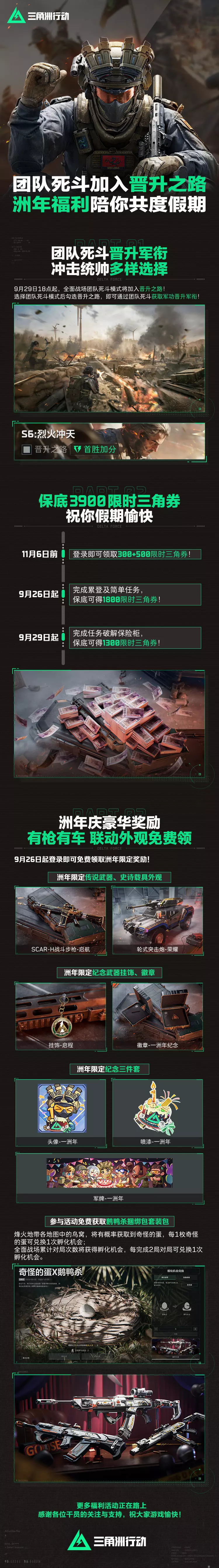 保底3900限时三角券活动现已经全面开放,洲年豪华奖励免费领取,还有联动外观参与活动也可免费获取!
