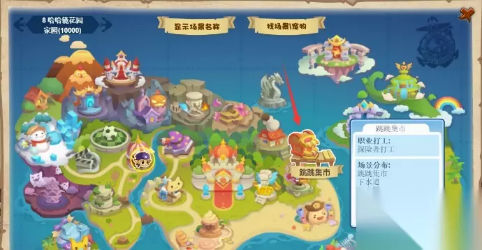 2、在地图上找到跳跳集市点击进入。