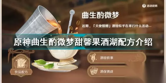 t15_2-t15_1:7.0 原神曲生酌微梦甜馨果酒湖怎么调?原神曲生酌微梦活动已经开启,在活动中,玩家可以选择不同的基底来进行调配,甜馨果酒湖就是属于果汁类的一个饮品,下面就由小编给大家带来原神曲生酌微梦甜馨果酒湖配方介绍,希望能给大家带来帮助。