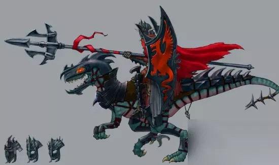 黑暗骑兵是地牢的4级兵。升级之前并不好用,虽然冲锋技能很好很强大,但速度甚至不如血腥少女,但在升级为冷血骑兵之后速度提升到6让他们成为优秀的骑兵,4级兵的产量让他们能有一定的数量基础,冲起来以后能对敌方高级单位构成威胁。而另一条升级分支路线——迅猛骑兵会让他们丧失冲锋能力,换来的是对炮灰单位的高效伤害,所以具体怎么选择升级还要看情况而定。 蜥蜴作为地牢的标配坐骑确实也极大程度对卓尔精灵的背景进行了还原,《英5》游戏中除了黑暗骑兵以外,地牢的英雄角色“术士”的坐骑也是蜥蜴。