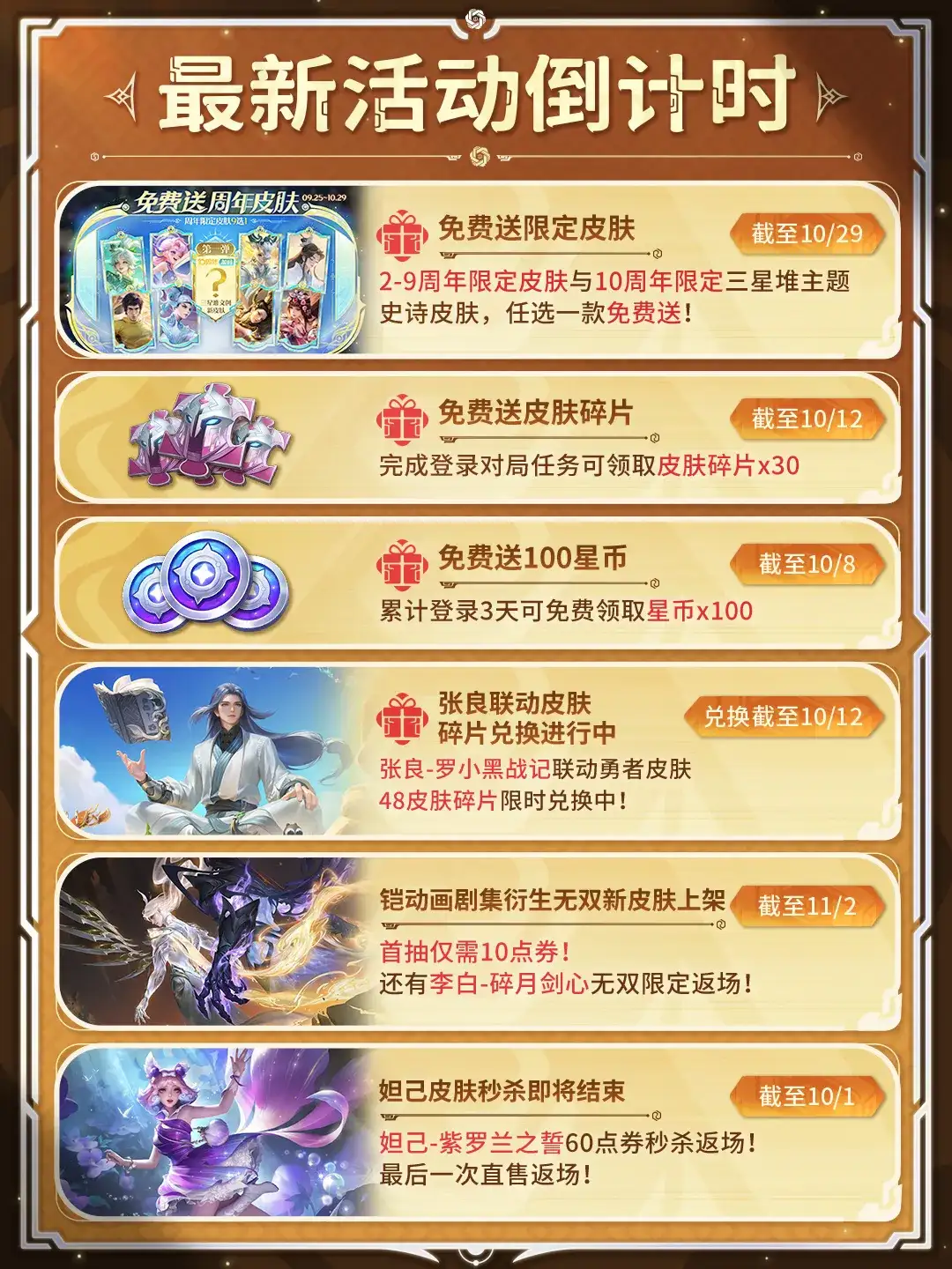 ⭐【免费送】2-9周年限定皮肤与10周年限定三星堆主题史诗皮肤任选一款带走!