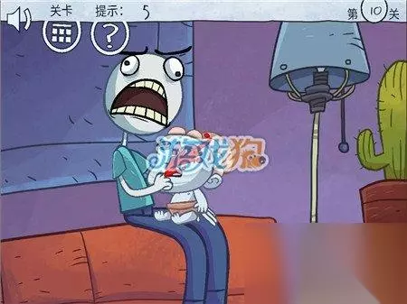 第10关:点击大人的嘴巴,其手指会放到小孩子嘴里,然后狂点小孩子的嘴,直到其把大人的手指咬断,即可过关。