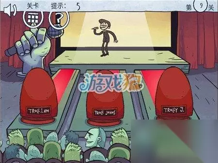 第9关:点击右下角的人,他会上台唱歌,等到三个评委都转身的时候,再点击下屏幕任意位置,即可过关。
