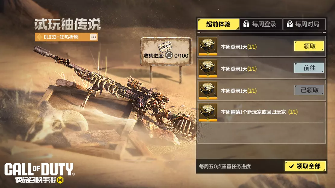 9月26日,试玩抽传说活动已上线,战士们邀请战友回归,即可领取DLQ33-狂热祈愿宝箱,抽取传说级武器DLQ33-狂热祈愿。