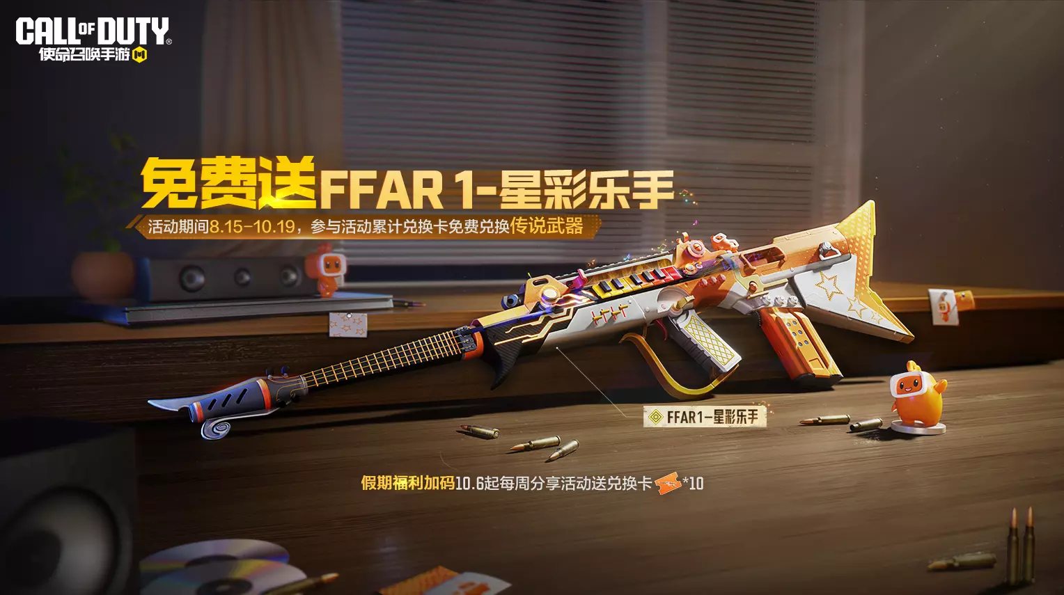 传说级武器FFAR 1-星彩乐手战士们都拿到了吗?没拿到也别担心,瘦普会发力的!10月6日,传说免费送活动加码来袭,每周分享活动本身获得的兑换卡数量增加至10张,加码加不停,战士们不要错过啦~