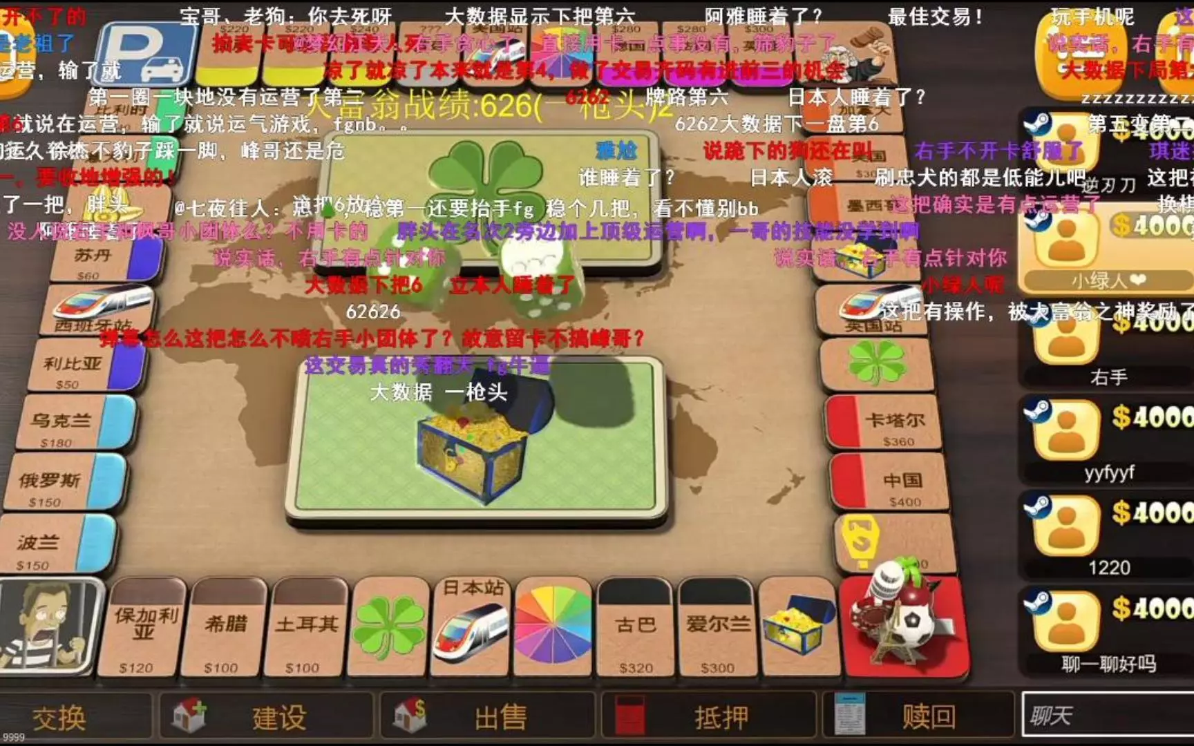OB大富翁最妖的一盘,眼子第一轮二连,肉猪二雄走死六连右手