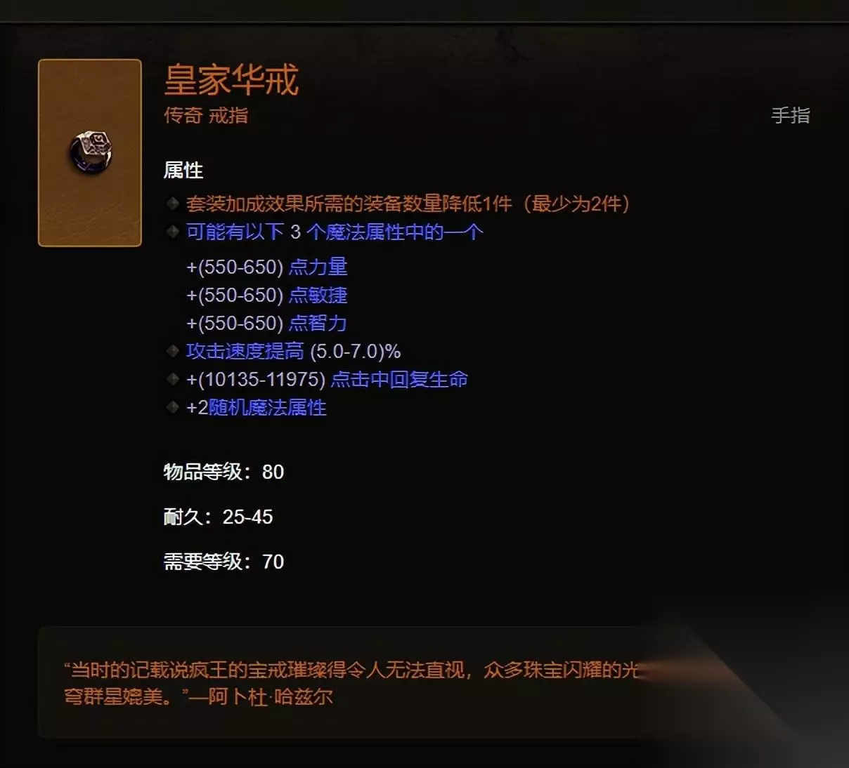 完成赏金任务非常重要。赏金任务的奖励箱不仅可以获得大量材料,还可以获得独特的掉落装备,例如皇家戒指。这枚戒指的传说特效非常好用。很多BD都是靠这个环来匹配的。