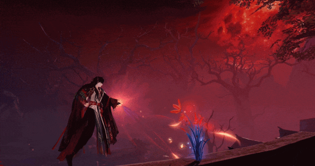少侠在寻找兰花时,要注意别被头顶的血月美景吸引而舍不得移开目光,当望向血月的时间越久,视野就会越发泛红,少侠的青丝也会随着转变为赤红色,整个天地变得像蒙上一层红色的薄纱,越来越模糊,直到完全变成一片血红色……