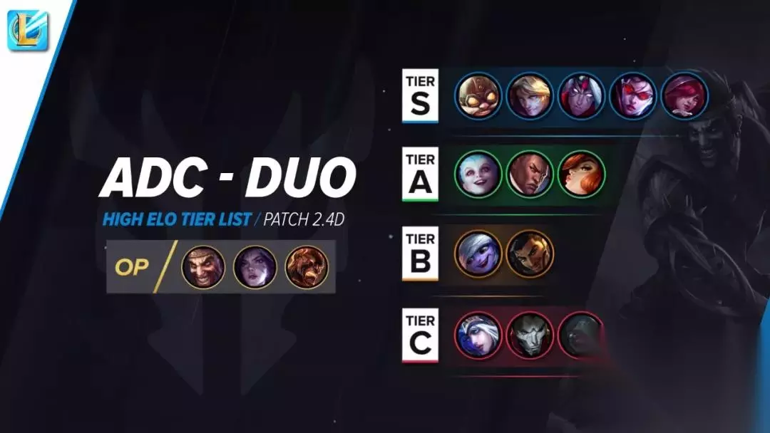 4.下路 T0梯队德莱文 卡莎 火男 T1梯队飞机 EZ 韦鲁斯 VN 霞 T1梯队金克丝 卢锡安 女枪 T2梯队小炮 阿克尚 T3梯队寒冰 烬 赛娜 德莱文火男在当前版本纯伤害高成为了OP,后排的几位英雄中,阿克尚不适合打下路,小炮发育周期太长,寒冰和烬≈远程兵,在ADC的选择中,卡莎德莱文外,大家可以练一下霞和EZ,容错率很高,在特殊对局不比前面两位差。