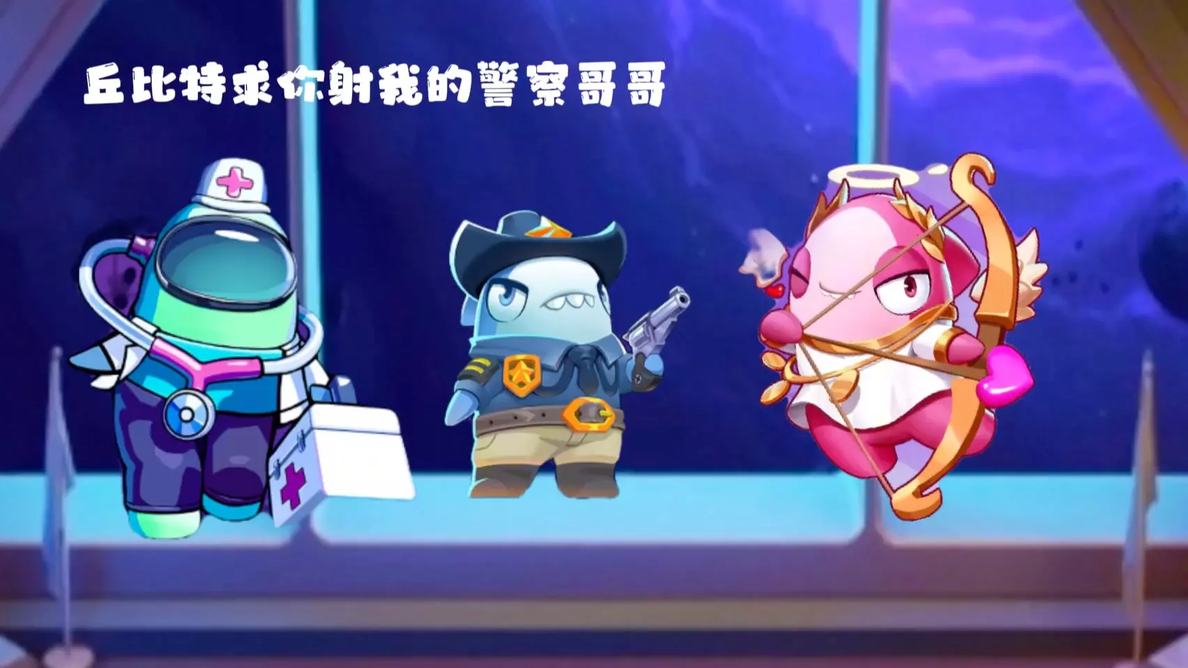 这是《太空行动》的搞笑内容,展示了丘比特角色想对魔法师角色射箭,结果反被魔法师拿出的箭吓到,还引来了警察角色,趣味呈现丘比特在太空杀里的搞笑日常。