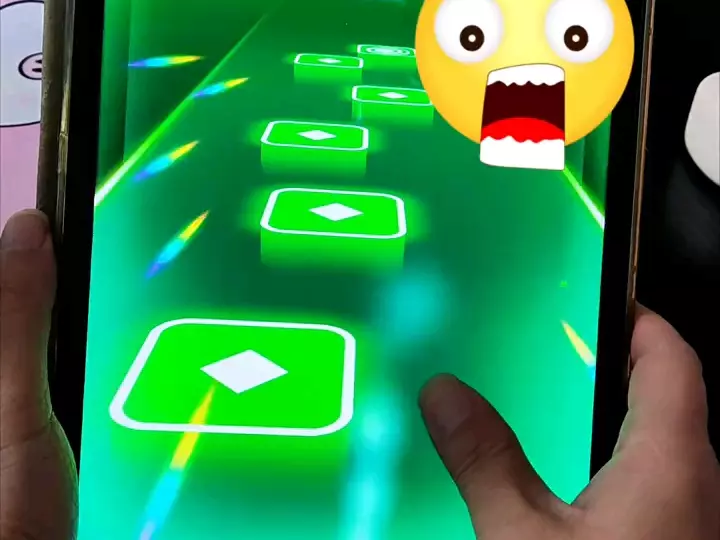 这是一篇关于音乐游戏的分享帖,楼主用“手:我感觉我似了~~~”的文案,表达这款音乐游戏难度较高,操作起来极具挑战性,从游戏画面能看到曲折的行进路径,进一步体现游戏的操作难度。