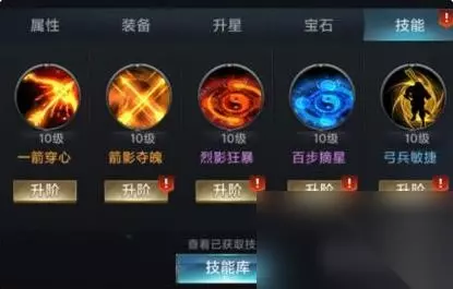 2、弓兵技能搭配:箭影夺魂、一箭穿心、烈影狂暴、百步摘星、弓兵敏捷。此搭配攻击时有几率触发连击,增加伤害。被动技能增加暴击率,命中率。