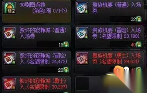 寂静城入场需要30PL和入场券,可以重复刷,所以只要有疲劳和入场券,就可以快速装备毕业,入场券可用刷图点数兑换或者在马杰洛处兑换