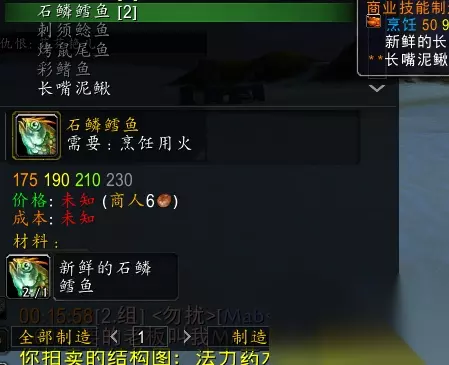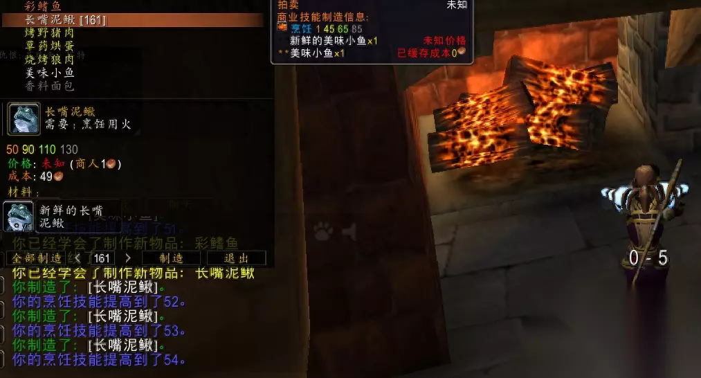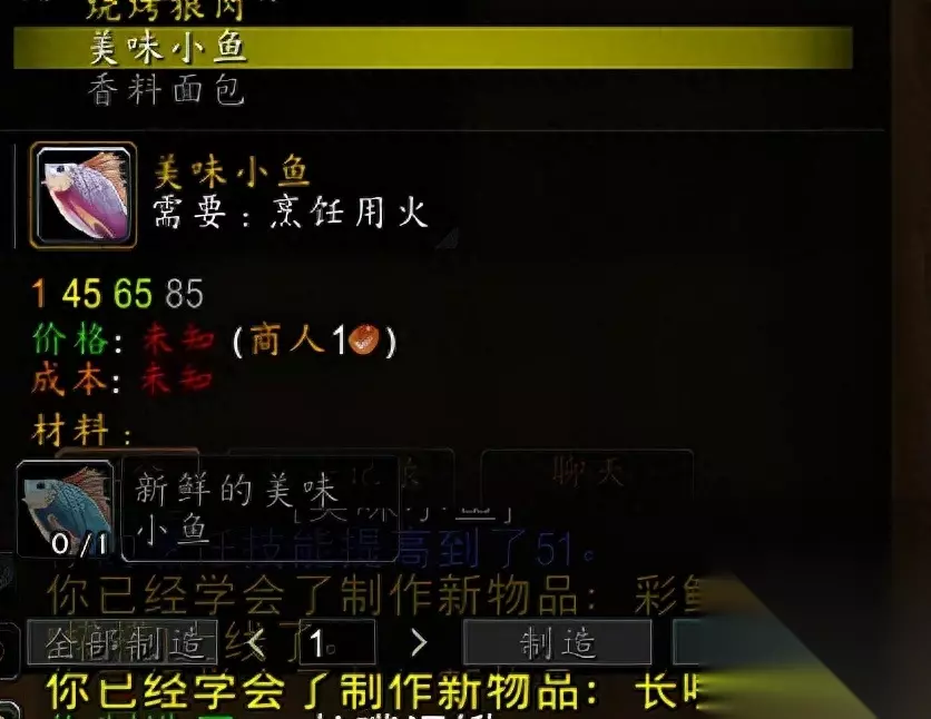 你可以在暴风城学习钓鱼,通过制作美味小鱼将技能提升到50级。钓鱼时,你可能会钓到新鲜的美味小鱼和泥鳅,记住不要扔掉泥鳅,因为后续会有用处。你可以从NPC处购买配方,对于联盟成员,可以在闪金镇找到。在学习过程中,别忘了提升你的中级钓鱼和中级烹饪技能!最好准备一些燧石和火绒,如果你不打算出售的话,提升技能后可以选择摧毁它们。这些配方的主要材料都是鱼。
