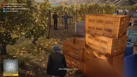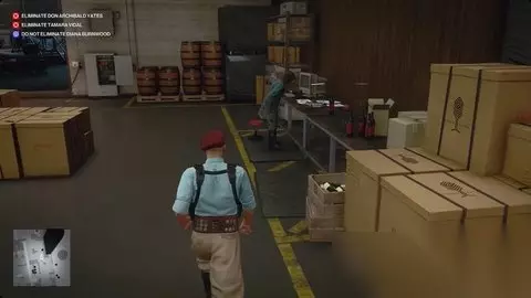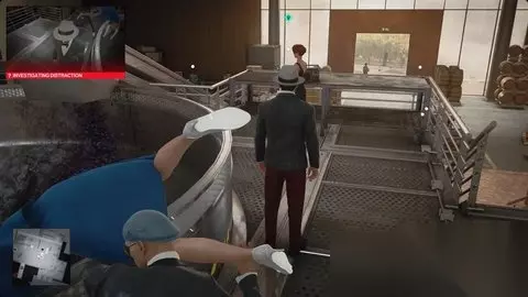 穿过发酵室向西北方向。走楼梯到角落里大型发酵罐的顶部,向巴尔加斯询问此事。 当他完成后,伯恩伍德和巴尔加斯将回到楼下。维达尔将方便地与您一起出去玩。制服她,并将她的身体倾倒在罐中,以获得初级发酵壮举挑战。 .关注首席酿酒师 无论您如何处理问答环节,请继续游览并前往桶室完成“游览”任务故事。 2.首席酿酒师 从葡萄压榨机返回生产室。就在头顶(车库)门外,你会看到首席酿酒师巴尔加斯。闲逛一会儿,他会接耶茨的电话(然后开始抱怨)。您将在通话后选择“游览”任务故事。 伪装成首席酿酒师