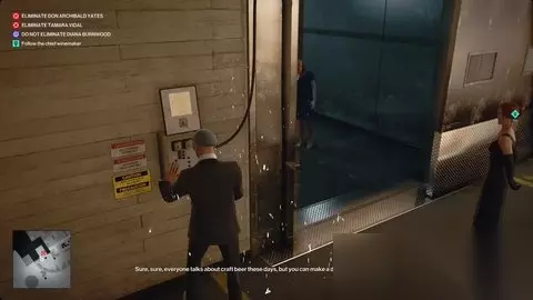 再次打开水泵,将首席酿酒师吸引过来。制服他,穿上首席酿酒师的伪装,把他的尸体塞进同一个板条箱里。 加入嘉宾//展示制作室 前往生产室入口(葡萄田路和生产室之间)与客人见面。 介绍发酵室 带领客人进去,告诉他们发酵室的情况。 此时,您将获得与科尔沃黑相同的四个选项。 选项1:现存冰箱 向左转(南),带领团队前往“拖入式”冰箱。展示它,科尔沃和维达尔都会走进去。