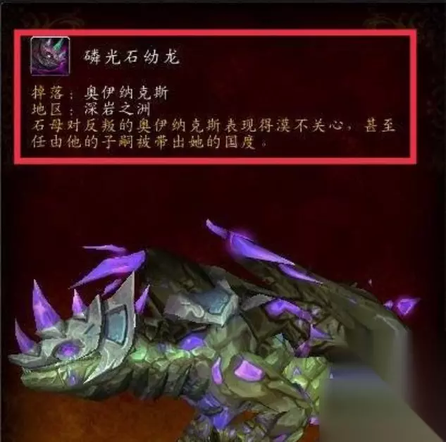 魔兽世界wow磷光石幼龙怎么获得 获得方法: 1、[磷光石幼龙] -稀有精英怪[奥伊纳克斯]击杀掉落,也是目前极其难蹲到的坐骑。