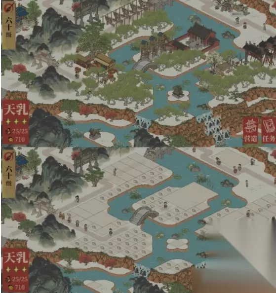 可以通过改布局将不老泉相接,不用花费资源修建不老泉。 修好鸡笼后,用[改布局]将鸡群移入鸡笼。 四、梗河
