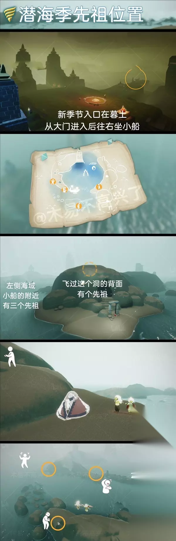 2、左侧海域小船的附近有三个先祖,飞过这个洞的背面有一位先祖。 3、综上所述,潜海季先祖位置已经在图示中标注的非常清楚了,大家根据游戏宝小编提供的潜海季先祖位置图解就能轻松找到潜海季先祖位置了。