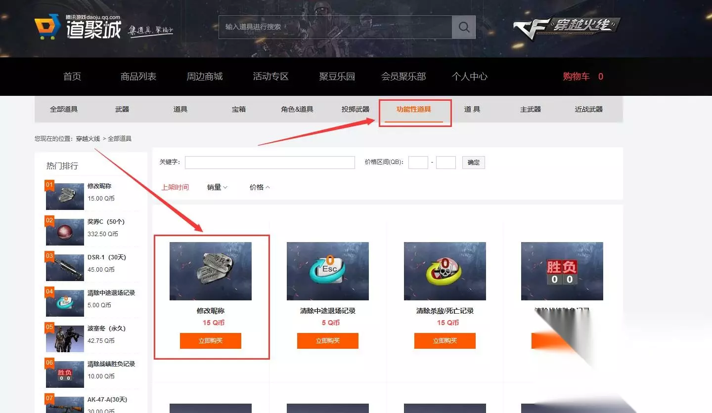 3、在【功能性道具】中找到【修改昵称】,购买并使用。