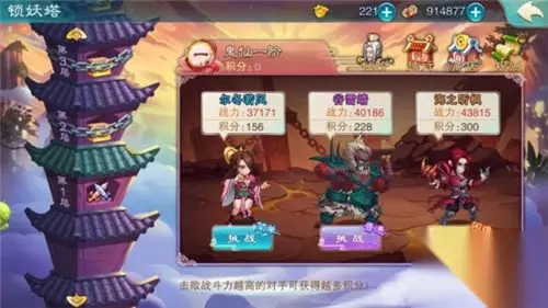 锁妖塔一共15层,每层拥有3个不同难度的挑战对象,玩家可选择其中一个难度进行挑战。 开战前,玩家可自行布阵,并根据难度不同,在三种策略选择其一,给自己添加胜利的筹码。
