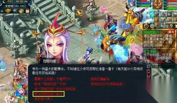 3、选择【参加胡姬琵琶行副本】传送进入副本场景; 4、也可在组好队伍后去长安城(199,160)找【副本官员】快速进入。