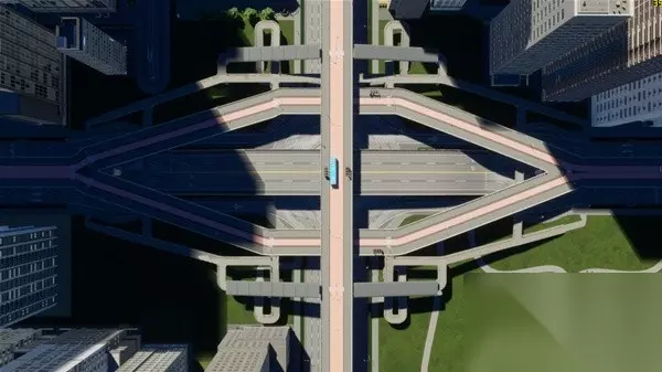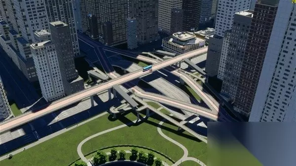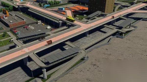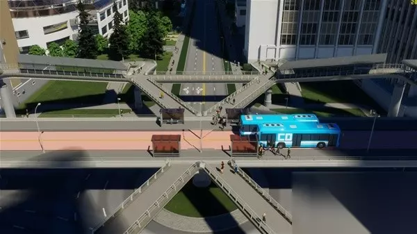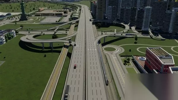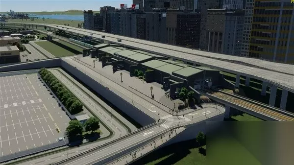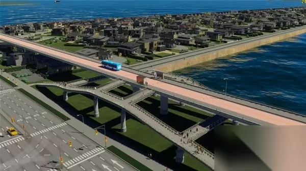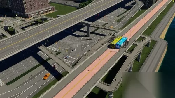 整个新城区我尝试做了一下高架BRT和高架外环线,主要是尝试无MOD情况下的原本工具能不能做出比较复杂的高架和BRT,高架上下桥立交桥没有问题,但是BRT的人行天桥如果不开无碰撞还是很难完成的,各种说重叠和无效形状,最后还是开了开发者模式才完成的,并且看起来也不违和。BRT部分BRT起点站