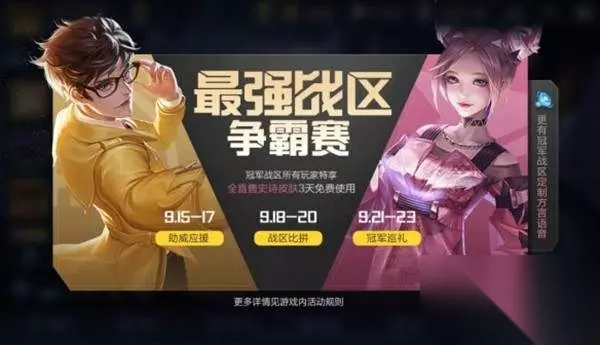 王者荣耀战区皮肤是什么 战区皮肤是广东省战区专属的,因为冠军是广东省战区,所以官方奖励广东战区所有的商城直售史诗级皮肤都可以免费试用3天。 王者荣耀广东战区专属活动结束时间 2020年9月21日至9月23日24点 广东战区专属福利介绍 所有商城直售的史诗皮肤玩家免费用,这里需要明白是商城直售,一些限定和特殊皮肤是用不了的,可以免费用的皮肤有,直售史诗皮肤,伴生皮肤。 玩家们要注意战区每一周只能更换一次,而且周一早上6点才能换,这次活动只有9月21日这天才有机会换到广东战区的皮肤,9月22日战区功能就会关闭,等下一次开放的时间是9月28日,还有如果玩家用手机自带定位去换,人没有在广东,是不能换广东战区的。 王者荣耀广东战区专属皮肤大全 所有直售的史诗皮肤都可以使用,符合皮肤要求的包括: 孙尚香:时之恋人 瑶:遇见神鹿 橘右京:修罗 不知火:舞魅语 小乔:青蛇 大乔:白蛇 娜可露露:晚萤 公孙离:无限星赏官 伽罗:箭羽风息 孙策:猫狗日记 大乔:猫狗日记 阿轲:节奏热浪 白起:星夜王子 程咬金:功夫厨神 李元芳:逐浪之夏 刘禅:天才门将 蔡文姬:舞动绿茵 铠:曙光守护者 百里守约:特工魅影 安琪拉:心灵骇客 亚瑟:心灵战警 诸葛亮:黄金分割率 兰陵王:暗隐猎兽者 小乔:缤纷独角兽 夏侯:惇乘风破浪 刘邦:德古拉伯爵 花木兰:水晶猎龙者 韩信:白龙吟 张飞:乱世虎臣 吕布:末日机甲 李白:千年之狐 曹操:幽灵船长 貂蝉:圣诞恋歌 吕布:圣诞狂欢 露娜:紫霞仙子 墨子:金属风暴 嬴政:暗夜贵公子 嬴政:摇滚巨星 宫本武藏:鬼剑武藏 刘禅:绅士熊喵 廉颇:地狱岩魂 注:2888点券皮肤因为是商城直售,所以电玩小子、苍穹之光、龙骑士、暗夜猫娘都是可以免费用的。 【小编推荐】专区入口 || 视频站入口 || 体验服申请入口 || 全民竞猜赢好礼 【新英雄爆料】| 司马懿 || 瑶 || 孙策 || 新英雄:囚徒/书圣/瞬 | 【新皮肤爆料】| 李白团战皮肤:敏锐之力new || 诸葛亮团战皮肤:掌控 || 典韦穷奇皮肤 Hot!! | 王者荣耀最新攻略 赛季段位继承表 每日一题 边境突围玩法攻略 体验服爆料