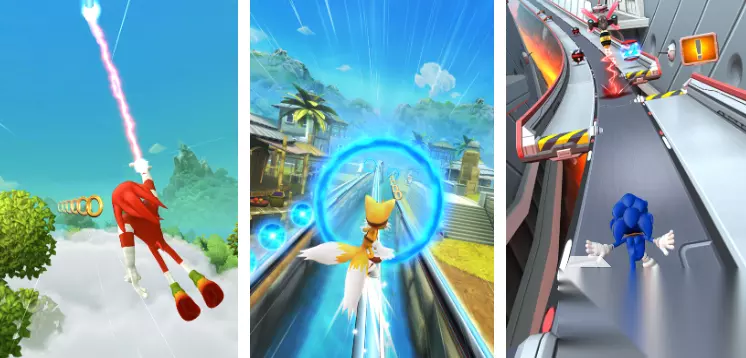 在索尼克音爆游戏中,将跑酷与冒险紧密融合,游戏画面精美,场景从繁华都市街头到神秘幽深丛林,再到冰天雪地的雪山,每个场景皆精心雕琢,搭配动感背景音乐瞬间点燃玩家热情,操作上玩家通过简单手势即可操控索尼克等角色,向上滑动实现跳跃,躲避空中障碍,向下滑动完成下滑,穿过低矮通道,左右滑动则灵活走位,避开侧面袭来的危险。 高速下载 普通下载 优先233乐园APP下载 3、《索尼克跑酷》