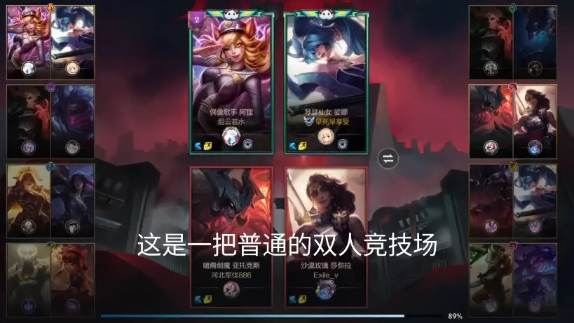 本文分享了联盟手游双人竞技场中,玩家误打误撞触发异常的英雄皮肤显示bug,并非新推出了换肤系统,展示了该异常在对局中的画面情况。