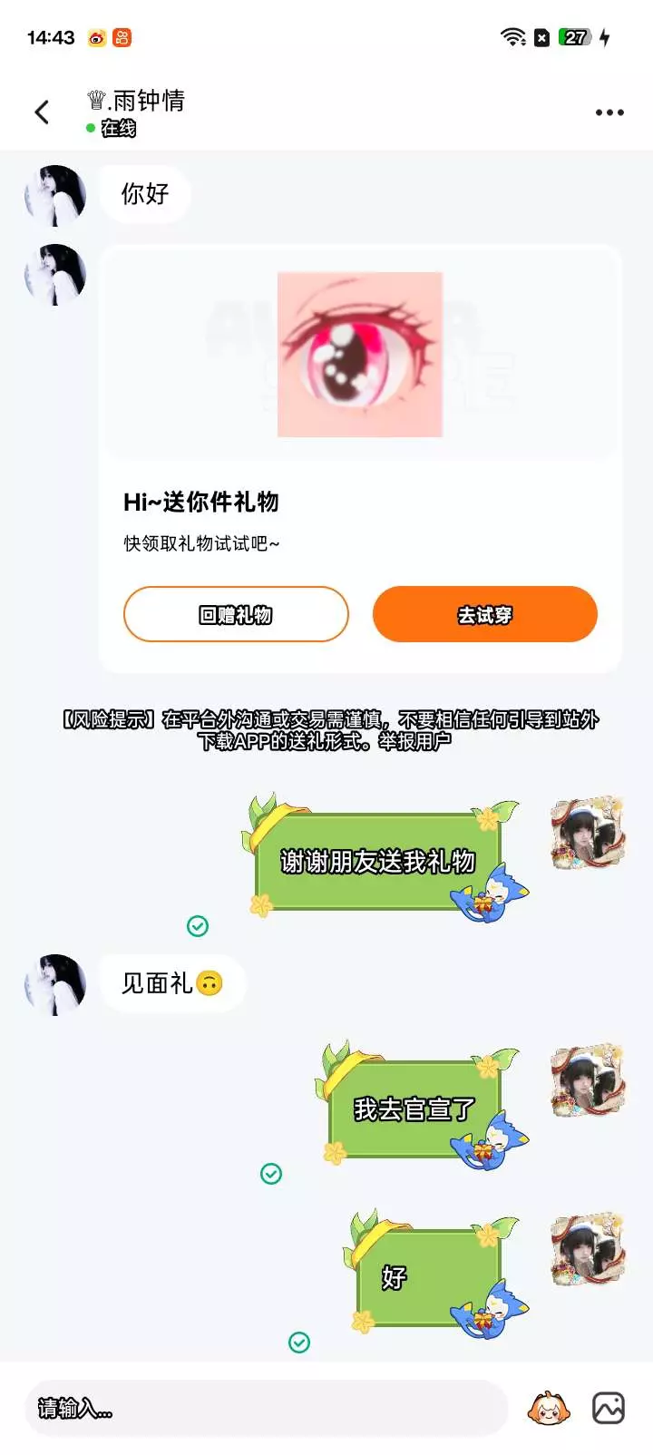 谢谢雨钟情送我礼物,感谢