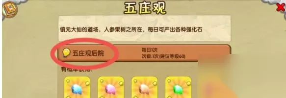 - 控制技能:地刺禁锢,保持距离,避免触发。 3. 战术应对 • 战斗策略:重点针对boss的两个技能,其余时间保持普通攻击即可。 通关技巧总结 • 注意 boss 行动模式:灵活躲避,抓住破绽。 • 团队协作:如果有多人组队,合理分工,共同应对。 常见用户问题解答: 1. 问:我等级还没到60级,能进入五庄观后院吗? 答:不能,五庄观后院开放需要角色等级达到60级。 2. 问:每天都只能挑战一次吗? 答:是的,每天只有一次挑战机会,合理安排时间。 3. 问:怎么才能顺利通过第三波的boss战? 答:避开boss的回血和控制技能,保持距离并找准攻击时机。