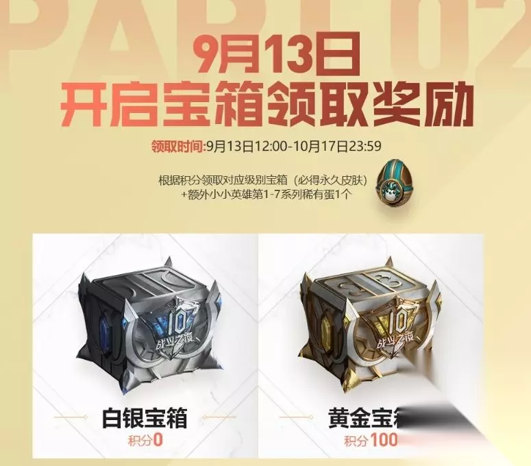 战斗之夜活动内容一览 10周年战斗之夜不仅有宝箱活动,游戏内还有全英雄限免、皮肤限免等活动等待玩家参与,感兴趣的 亲爱的召唤师, 十周年战斗之夜现已来临,在9月12日当天同时完成以下两个任务,即可领取战斗之夜宝箱钥匙,获得解锁十周年战斗之夜宝箱的资格。 1、9月12日当天在任意大区,完成1场任意模式对局 2、在9月3日-9月12日期间,登录1次掌上英雄联盟或登录1次金铲铲之战。 9月13日12:00至10月17日23:59期间,已获取宝箱钥匙的玩家可以开启自己所获积分对应的宝箱,获得一款随机永久皮肤与一个第1-7系列小小英雄稀有蛋奖励,随机永久皮肤奖励会优先抽取玩家未拥有的物品。9月13日当天可前往掌上英雄联盟提前2小时(10:00)领取宝箱奖励!
