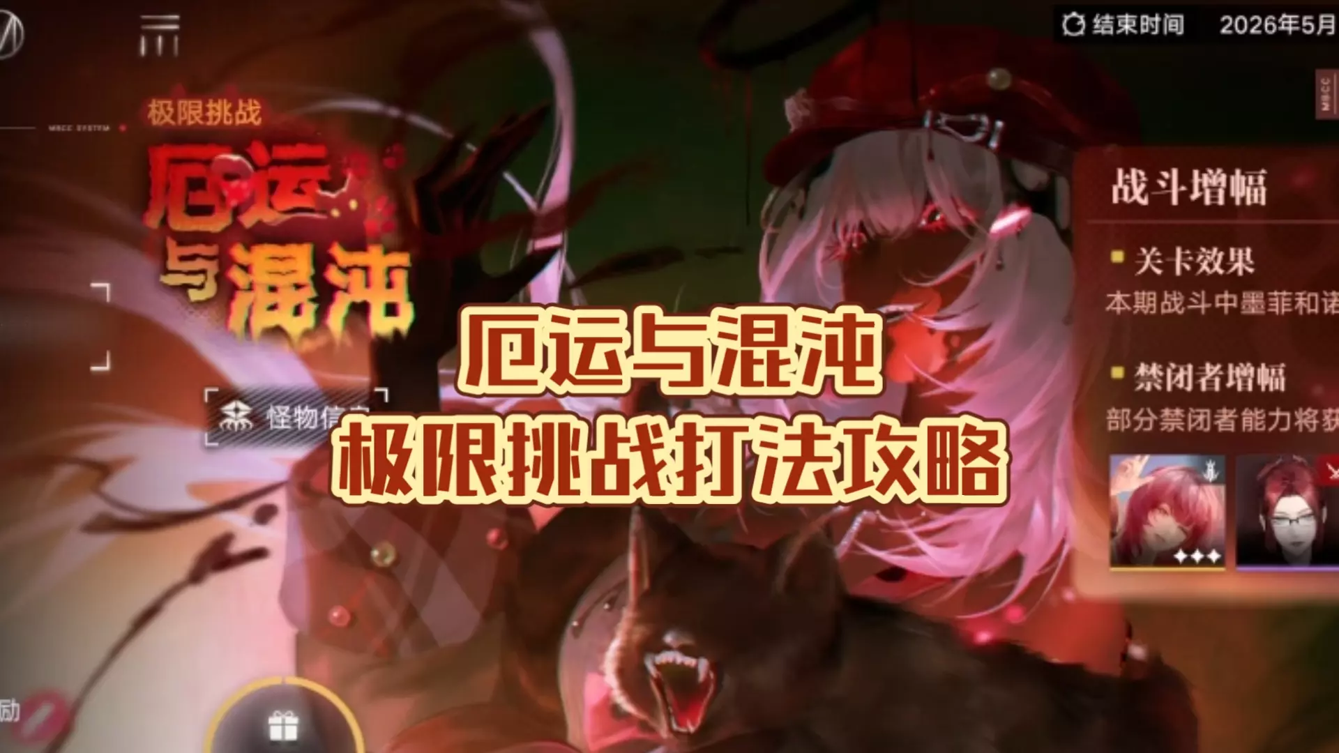 这是《无期迷途》的极限挑战厄运与混沌关卡攻略,分享了真伤队打法,借助关卡对墨菲、诺玛的增幅buff,该队伍能轻松打出500W伤害,还提及了关卡的作战要点。