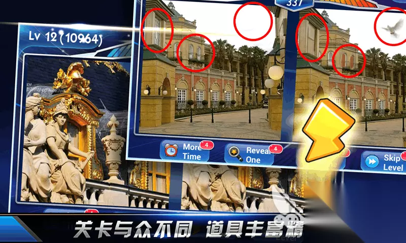 一款环球旅行主题的找茬手游,游戏中的关卡图片多以世界各地的建筑、自然风景这些高清照片为素材,关卡难度会逐渐增加,后期会加入光影变化这类更考验眼力的设计,关卡没有时间限制,而且有放大镜和提示功能,适合各类水平的玩家。游戏加入了自定义模式,玩家可以自己拍图生成关卡,也能和朋友双人对战或合作游戏。 手机扫码下载233乐园APP预约 预约订阅最新动态 优先233乐园APP下载 2、《找不同》