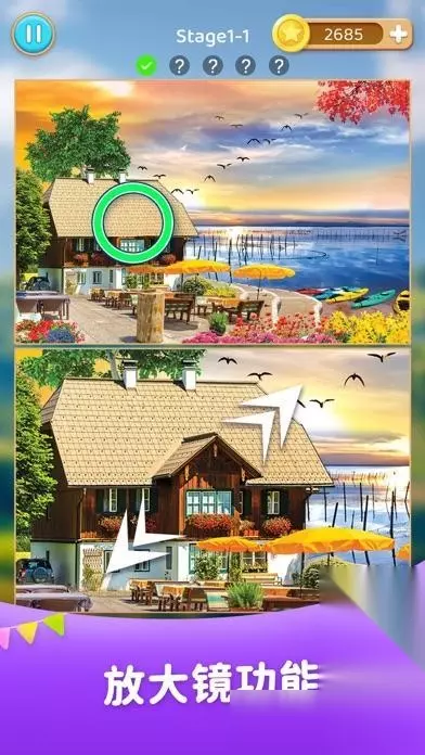 这是一款主打自己拍照生成关卡的找不同游戏,玩家可以拍摄任意一张照片,然后游戏会用这张照片去生成关卡,随机生成3-5处不同让玩家找出来。该游戏非常适合作为亲子游戏,不仅能锻炼孩子的观察力和专注力,而且照片也都是孩子比较熟悉的场景,不用担心游戏关卡突然蹦出来不适合孩子看的照片。 高速下载 普通下载 3、《慧眼寻异》