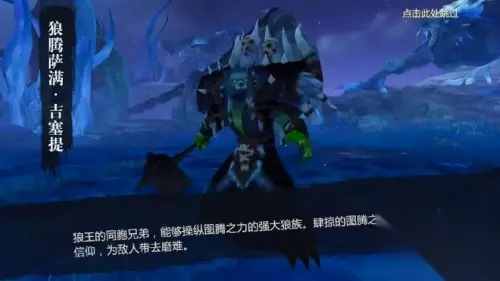 狼腾萨满·吉塞提是狼王的同胞兄弟,能够操纵图腾之力的强大狼族,肆掠的图腾之力为狼族带来信仰,为敌人带去磨难。 第一个BOSS的召唤图腾技能分为三类,分别是: * 闪电图腾:对一个固定方向,间歇性释放闪电流; * 仪式图腾:将目标玩家禁锢,玩家无法移动,但可以释放技能; * 狼群图腾:持续进行召唤,招出的狼群将向敌人发起自杀式的一击。 当BOSS同时释放多个图腾时,玩家最好优先攻击狼族图腾,而当图腾多于5个时BOSS会使用技能引爆所有图腾并造成大量伤害,因此需要不断转换攻击目标以控制图腾数量,防止所有图腾爆炸。