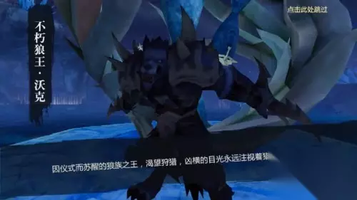 因仪式而苏醒的狼族之王,渴望狩猎,凶狠的目光永远注视着猎物。 第二个BOSS需要仪式才能苏醒,有两种方式可以激活结界,完成仪式,召唤不朽狼王。 第一种方式最简单粗暴,可以通过供奉生灵精华(也就是自己的血量)来激活,如果使用这种方式,请大家务必注意及时恢复血量。 第二种方式则是提交蕴含狼族之力的信物,具体有这几种: “石曜徽记”通过击败萨满吉塞提夺得; “野性獠牙”由击败狼族守卫队长概率取得; “不朽狼心”藏在崖间密道的宝箱里; “狼魂结晶”可由击败圣狼兽概率取得。
