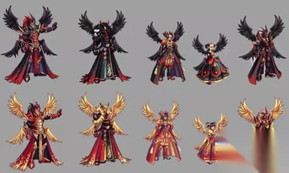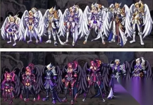 14、第二期神器天空套:光翼天使 第二期神器龙袍,以天四为胚子,进行升级或者合成操作获取,主打“大翅膀”情怀,与第一期的“召唤”和“骑乘”特效不同,光翼天使龙袍的特效是“召唤”和“变身”两种。 召唤:按下“召唤”按钮,在角色背后会出现“守护天使”,能随着角色的移动而移动,大翅膀守护天使。 变身:按下变身按钮,角色会进行变身,男角色变身为“大翅膀罗什”、女角色变身为“大翅膀光恶魔”,与神兽化灵相比,只有两种形态。