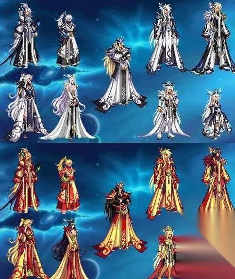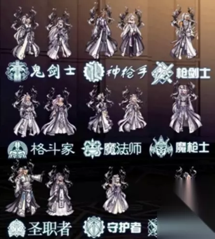 8、第八套(8期)天空[权倾天下套]。七周年年庆2015年发售。 职业:男女枪手,男女鬼剑士,男女格斗家,守护者,男女魔法师,圣职者,暗夜使者