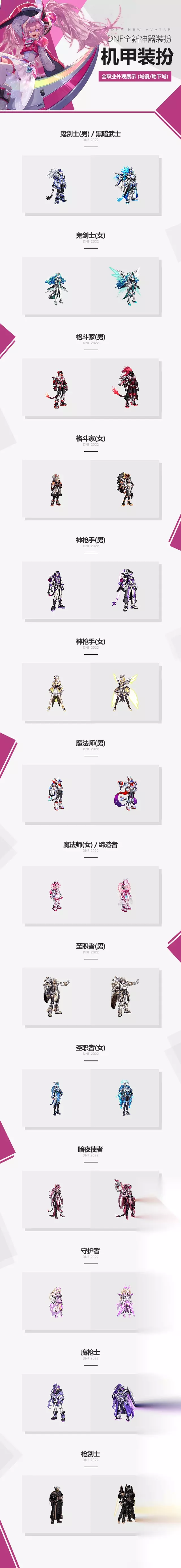 7、第七套(7期)天空[极天幻翼套装]。2015年3月发售。 职业:男女枪手,男格斗,男女鬼剑士,格斗家,守护者,男女魔法师,圣职者,暗夜使者