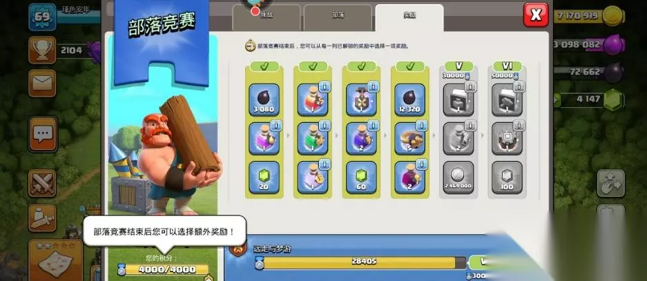 在部落冲突手游中,额外奖励指的是部落竞赛额外奖励,需要玩家需要积分达到4000后才能够获得,玩家可以在已解锁的奖励中,再额外点击选择一个,领取额外奖励。同时在联…