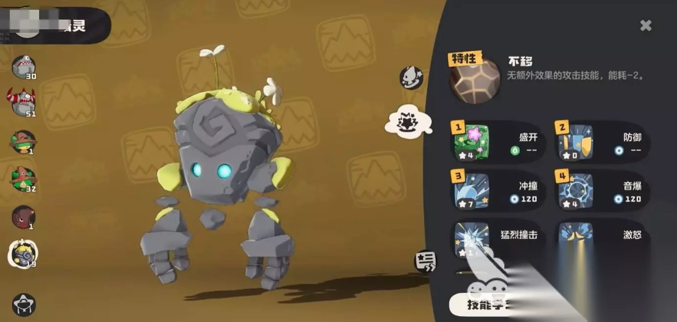 记忆石的被动是无额外效果的攻击技能能耗-2,配招大家可以选冲撞、寄生种子、应激反应等,这三个基本就能覆盖前期玩法,用它单刷时平均能耗控制在3点以内,对比起来精灵来说开荒更节省一些。总体上来说比较难抓,前期适配性还行。但是种族值高达509,生命、物防全部三位数,它也是为数不多能开杀暴技能的精灵,还有后期的强势技能摇篮曲、晒太阳都能学。可以成为仪式巨像的低阶平替。