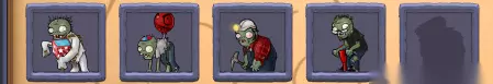 JACK-IN-THE-BOX ZOMBIE (疯子僵尸):手拿小丑箱的僵尸,生命中等,移动速度快,特技是一定几率自爆,将周围9格内所有物体毁灭 BOOLLOON ZOMBIE (气球僵尸):身上绑着气球的僵尸,生命低,移动速度中等,特技是飞行,飞行时不会被攻击 DIGGER ZOMBIE (矿工僵尸):矿工变成的僵尸,生命中等,挖地道时移动速度快,普通移动速度很慢,特技是挖地道,挖到底后会转回去吃掉一条路所有的植物 POGO ZOMBIE (弹跳僵尸):骑着跳跳棒的僵尸,生命中等,移动速度快,特技是弹跳,可以连续跳过阻挡物 这个位置的僵尸没开出来